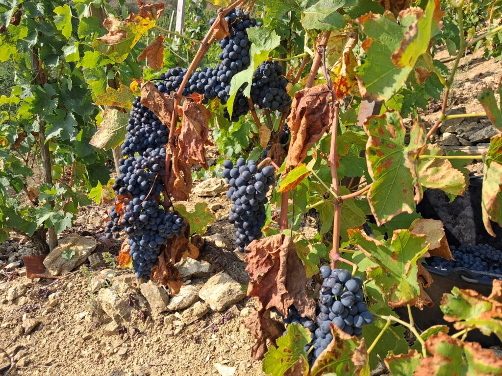 Cette année, les vendanges se sont déroulées du 8 au 20 septembre, sous un soleil généreux. Malgré une baisse de rendement de 20% (la pluie pendant la floraison a fait « partir en vrille » les fleurs, comme on dit en patois, et les deux canicules estivales ont mis à mal les grappes), la qualité de la récolte est exceptionnelle ! Une belle récompense pour toute l’équipe et nos vignes choyées.