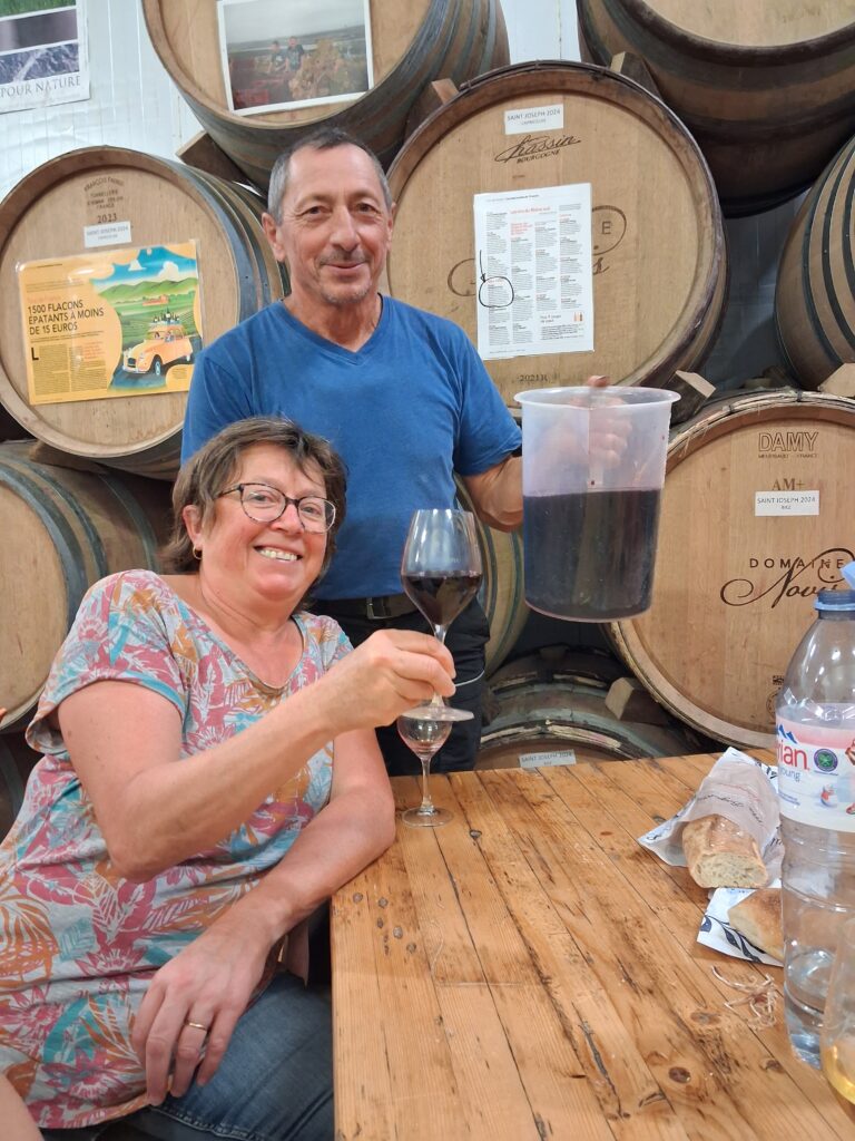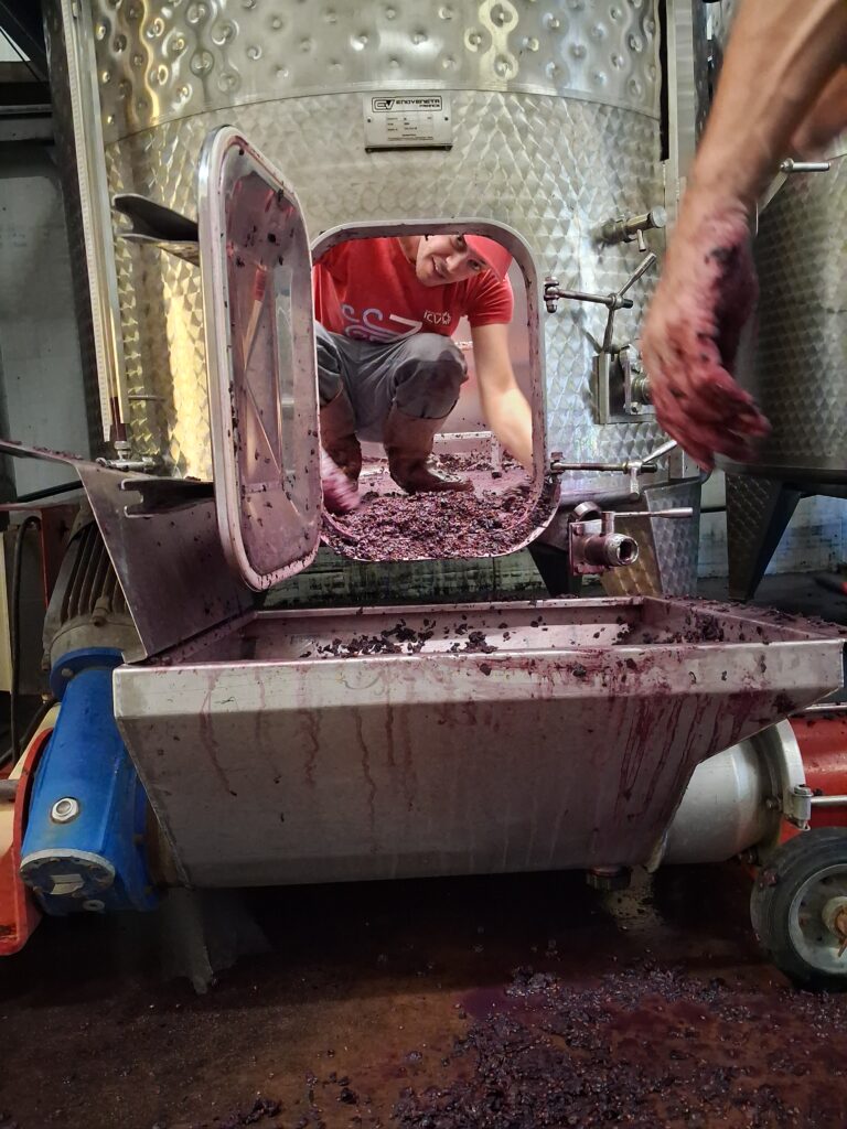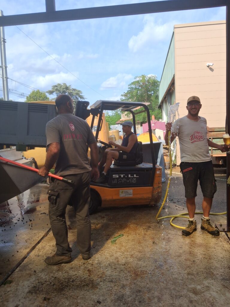 La fermentation alcoolique s’est parfaitement déroulée, en cuves pour les rouges et en tonneaux pour les blancs. Début octobre, nous avons décuver avec succès. Pour célébrer la fin des vendanges, nous avons partagé un repas convivial et prélevé la part des anges dans les tonneaux.