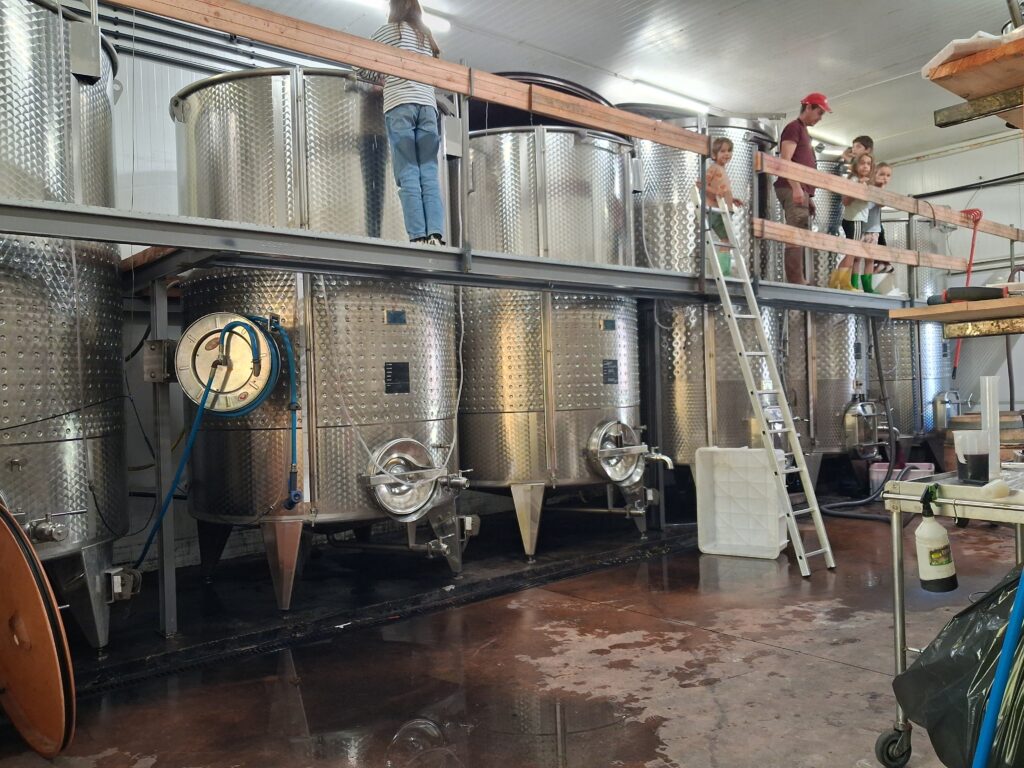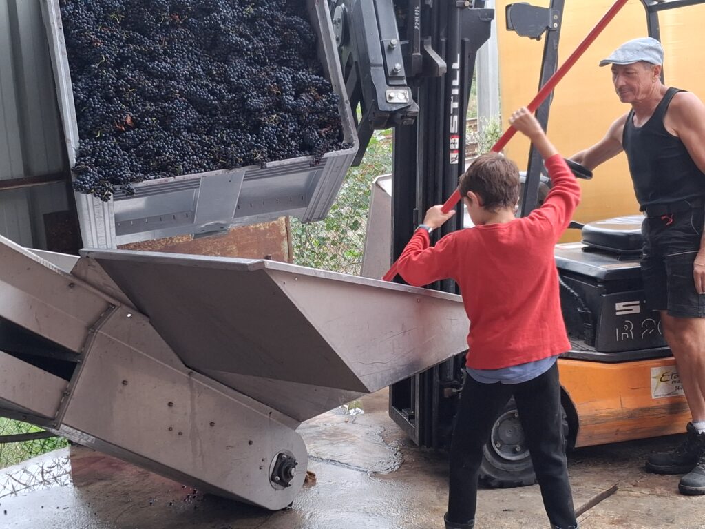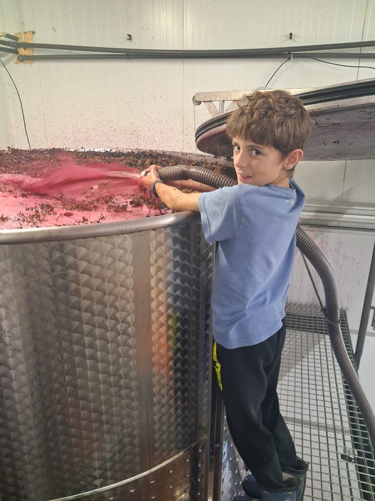 - Les enfants des « mamans-vendangeuses » ont même pu participer à une initiation à la vinification le mercredi : ils ont ressenti la chaleur de la fermentation en plongeant leurs mains dans le « chapeau de marc » !